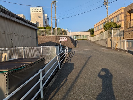 この写真の前方に職員駐車場があります。ここからアプローチできるといいのですが、
