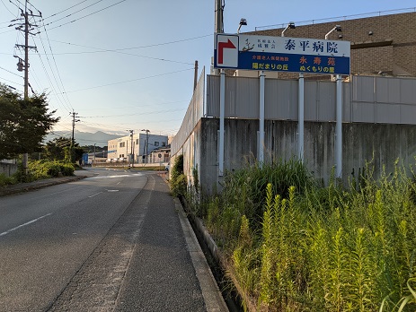右手に入って、坂をのぼると、左手にあるのが泰平病院→です。